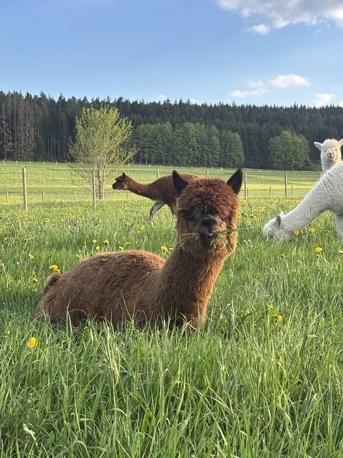 Das Alpaka- Wochenende ist für Euch, wenn Ihr möglichst viel Zeit direkt mit unseren Alpakas und Lamas verbringen und viel erfahren wollt. Also perfekt geeignet für Neuweltkameliden- Fans. Neben den Angeboten, welche schon mit der Ferienwohnung enthalten sind, beinhaltet es zudem einiges an Alpaka/Lama- Input. Automatisch mit dabei ist eine Gruppenwanderung nach Wahl, welche im Voraus direkt mit uns ausgemacht wird. Exklusive Wanderungen sind nach vorheriger Absprache auch möglich. Exklusiv als Feriengäste habt Ihr zudem die Möglichkeit für ein preiswertes Angebot eine private Schnupperstunde (oder im Sommer Fohlentreffen) zu buchen. Gleich zu Beginn Eures Aufenhaltes bei uns auf dem Bauernhof, bekommt Ihr die wichtigsten Infos rund um die Tiere und den Hof. Wer gerne aktiv ist und besonders viel Stall- und Bauernhofluft schnuppern möchte, darf uns gerne ansprechen und auch bei der Stallarbeit mithelfen.